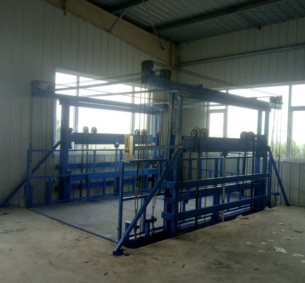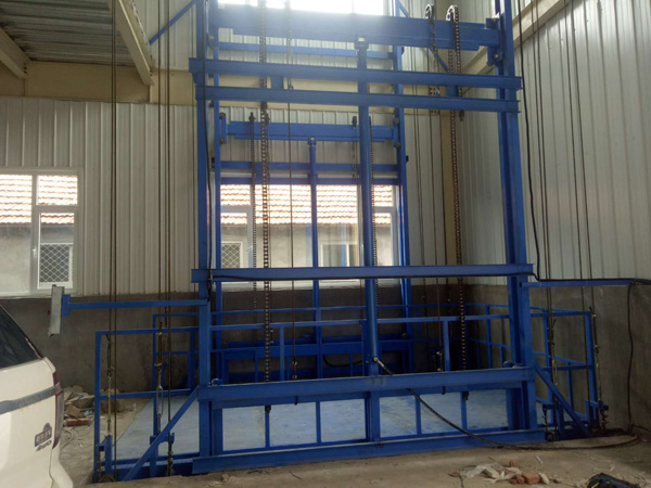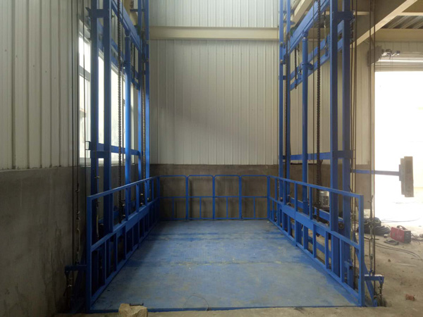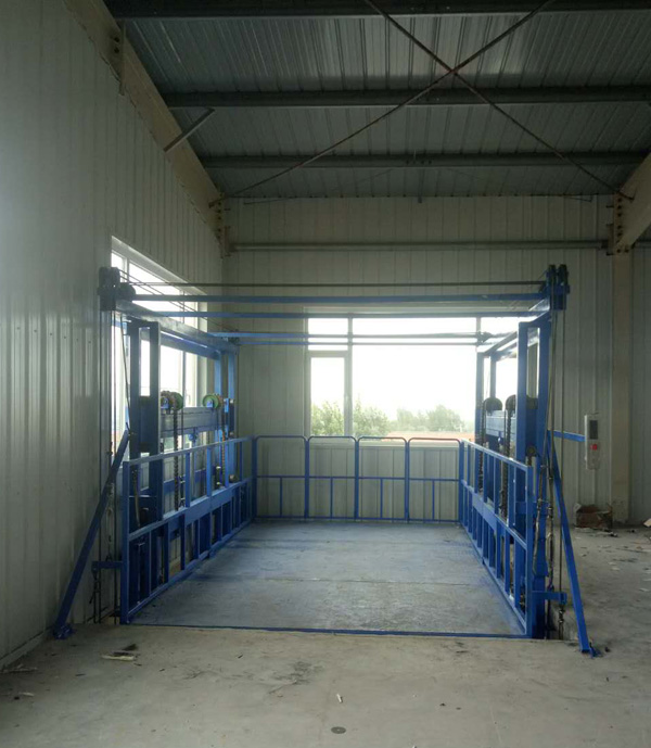液壓升降平臺(tái)制造廠家-濟(jì)南金創(chuàng)升降機(jī)械,生產(chǎn)的雙體導(dǎo)軌鏈條式液壓升降平臺(tái)在河北保定安裝完成,日前已經(jīng)投入使用中。